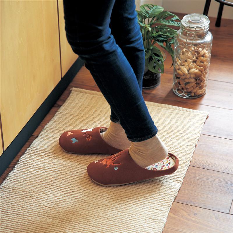 かわいくって履きやすい!で人気のデザインスリッパリピーターも多い、もっちり低反発に足がつつまれるようなスリッパ。履き心地はもちろん、デザインバリエーションにもこだわっています。よく買い替えるものだから、毎回楽しい気持ちで迷ってもらえるように、定期的に新しいデザインも追加。刺繍やアップリケでキャラクターをデザインしたこだわり仕様です。MサイズとLサイズをご用意しているので、家族や友達みんなで選べちゃ
