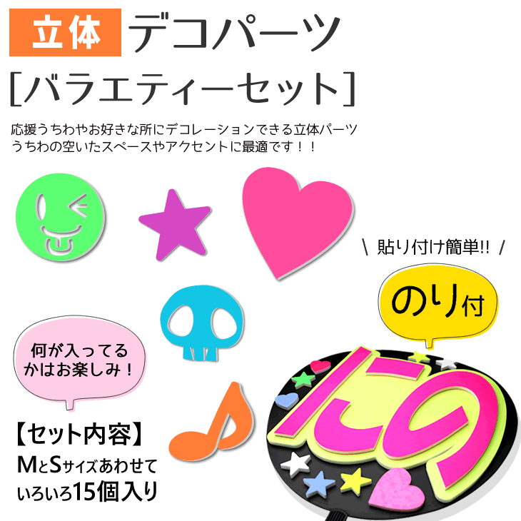 バラエティーセット | 立体デコシール【バラエティーセット】立体のハートや星が、誰よりも目を引く素敵な応援うちわに!この応援うちわならアーティストも気付いてくれるかも!?うちわ 韓流うちわ コンサートうちわ 応援うちわ concert ウチワ (ネコポス可)